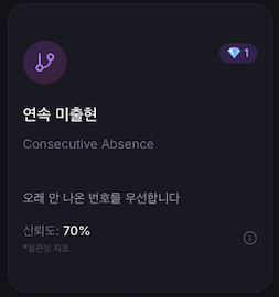 🔄 연속 미출현 (Consecutive Absence) "오래 안 나온 번호를 우선합니다" 신뢰도: 70%