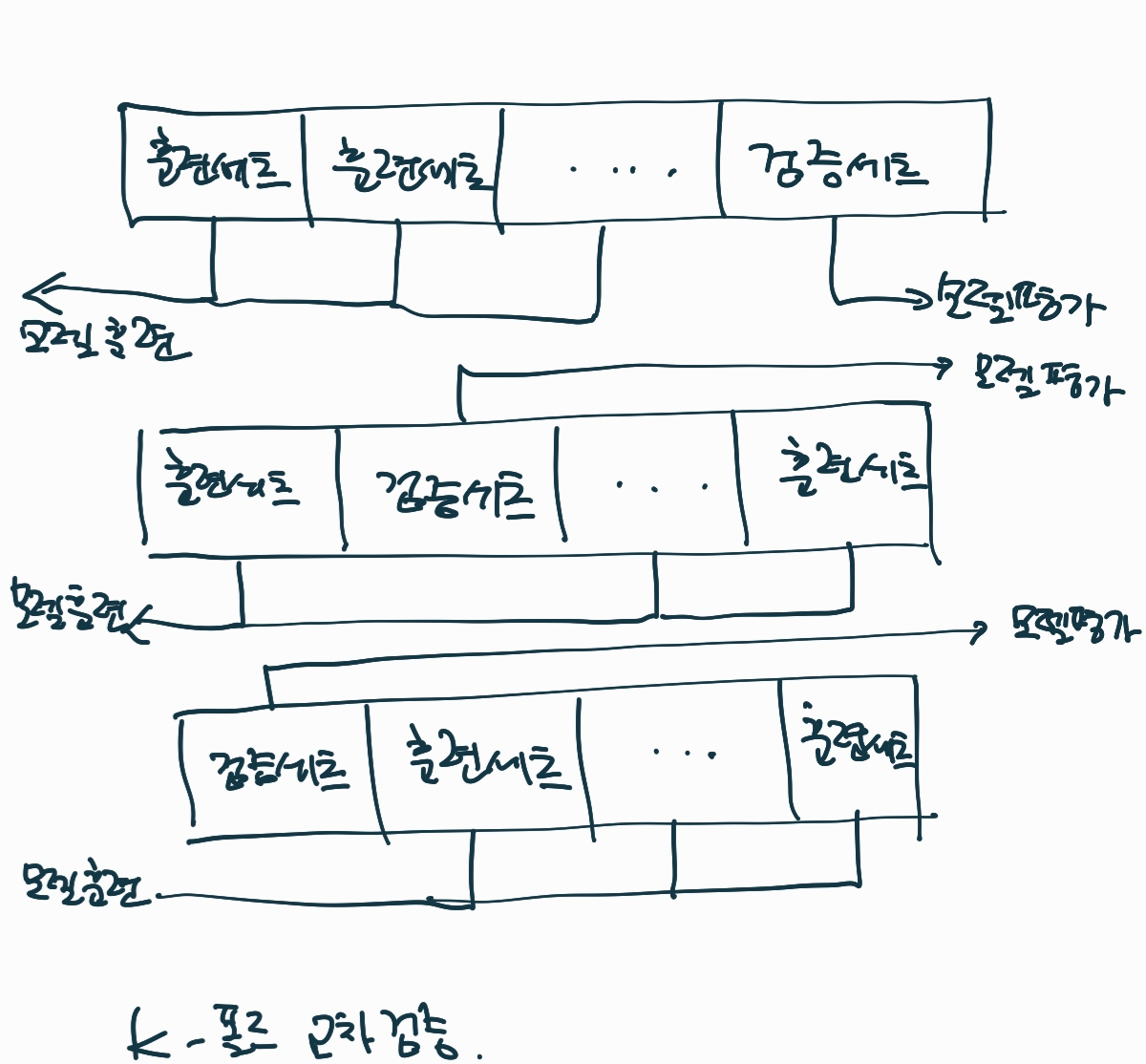 - 교차검증 : 훈련 세트를 여러 폴드로 나눈 다음 한 폴드가 검증 세트의 역할을 하고 나머지 폴드에서는 모델을 훈련. 이런 식으로 모든 폴드에 대해 검정 점수를 얻어 평균하는 방법