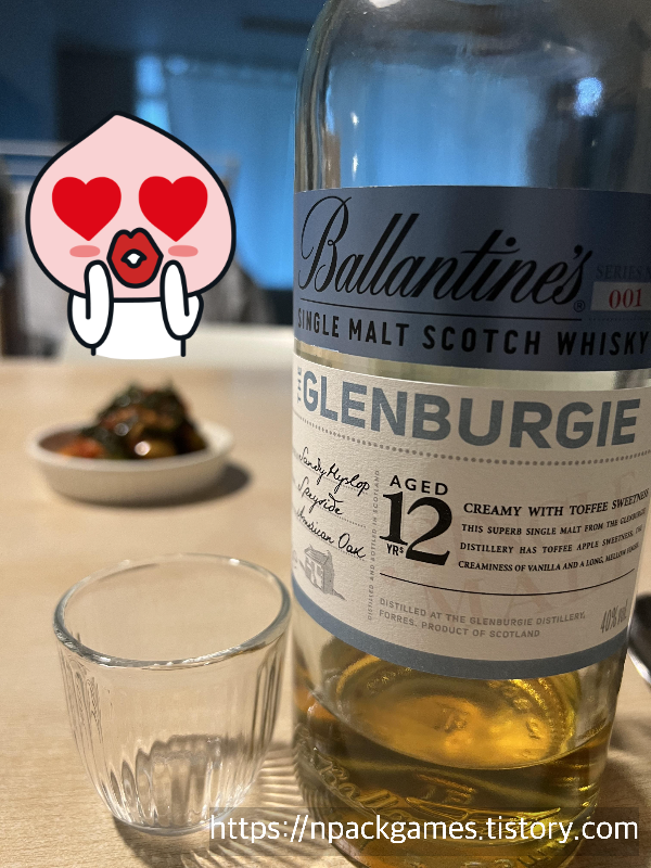 후각으로 느껴지는 위스키 향과 혀에 닿는 달달함, 목을 타고 넘어갈 때의 타격감, 그리고 코와 목에서 느껴지는 여운까지(공부한게 아니라서 표현이 저렴하네요... 이해를...)를 즐깁니다. 글렌버기는 이미지에서 느껴지는 것 처럼 코와 목에서 느껴지는 타격감은 강하고 여운은 길지 않은 것 같습니다. 그래서 느낌이 전체적으로 깔끔합니다. 부드럽고 고소한 맛이 납니다.