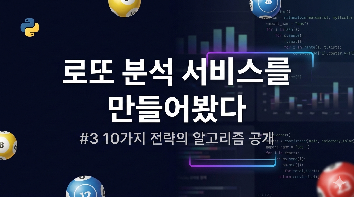 ⚠️ 이 글은 통계 분석 교육 목적이며, 로또 당첨을 보장하지 않습니다. 모든 조합의 당첨 확률은 동일하게 1/8,145,060입니다.시리즈 링크#1 로또 번호를 만들어 볼까?#2 로또 번호를 맞춰 볼까?#3 로또 분석 서비스를 만들어봤다 ← 지금 읽고 있는 글서비스를 만들었다작년에 #1, #2를 쓰고 나서... 멈출 수가 없었다."조합을 줄이는 필터를 더 만들면 되지 않을까?" "머신러닝 돌리면 뭔가 나오지 않을까?" "이걸 서비스로 만들면 사람들이 쓰지 않을까?"그래서 진짜로 만들었다. LottoLabs — 로또 번호 분석 서비스. Python + FastAPI 백엔드, scikit-learn 기반 추천 엔진, 10가지 분석 전략. 머신러닝도 넣고, Claude API 연동 AI 분석도 넣고, 꽤 ..